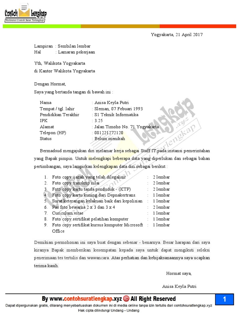Kumpulan contoh surat lamaran kerja untuk berpengalaman, fresh graduate, hingga magang. Bagi anda yang sedang mencari contoh surat lamaran kerja guru honorer anda bisa download di portal uang dalam bentuk doc dan pdf. Pendaftaran cpns pemerintah kabupaten yogyakarta formasi tahun 2020. Dan berikut kami akan memberikan contoh surat lamaran kerja lengkap. Biasannya surat ini dibuat oleh suatu instansi baik swasta maupun negri seperti sekolah, kantor pemerintahan maupun perusahaan swasta. Jadi seperti apa struktur dari sebuah surat. Contoh surat lamaran kerja pegawai honorer kantor dinas pemerintahan daerah. Tidak hanya di lingkungan yang ada dibawah pemerintahan langsung seperti di dinas atau di kementrian saja. Itulah yang dapat kami bagikan terkait contoh surat lamaran kerja pegawai honorer kantor dinas pemerintahan daerah. Berikut contoh surat lamaran pekerjaan yang bisa kamu download file dokumennya juga, link di bagian akhir artikel. Demikian info dari saya kali ini untuk contoh surat lamaran kerja pegawai honorer kantor pemerintahan, semoga bermanfaat dan jangan lupa bagikan ke sosial media lain agar teman teman dan orang lain pun bisa membuat surat lamaran. Contoh surat lamaran kerja pegawai honorer pemda adalah contoh lamaran pekerjaan terbaru yang akan admin bagikan pada kesempatan ini untuk anda yang ingin melamar kerja di instansi pemerintah daerah. Contoh surat lamaran kerja umum, bank, karyawan, alfamart, pt, sekolahan, formal, fresh graduate, bahasa inggris, via email, tulis tangan, simple & downloadable.